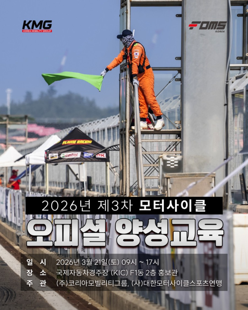 (사)대한모터사이클스포츠연맹에서는 2026년 모터사이클스포츠 신규 오피셜 양성교육(3차) 에 대한 접수 안내를 드리오니